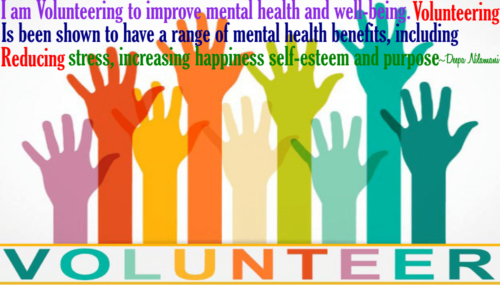 People volunteer to improve their mental health and well-being. Volunteering has been shown to have a range of mental health benefits, including reducing stress, increasing feelings of happiness and fulfillment, and improving self-esteem. By volunteering, individuals can feel a sense of purpose and connection to others, which can have a positive impact on their overall well-being.
